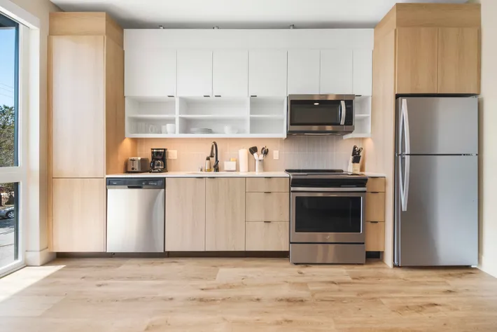 - Units Feature High Ceilings, Expansive Windows, and Wood-inspired Floors